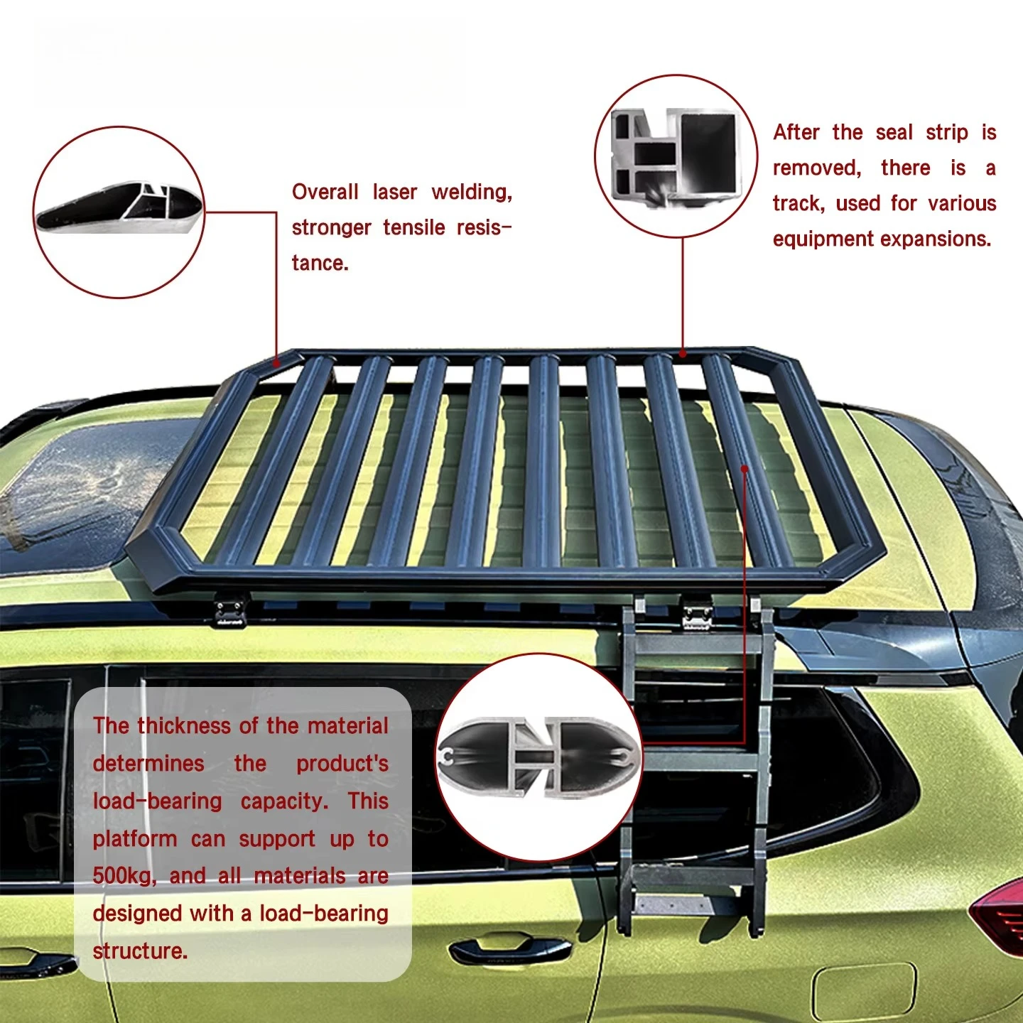 The aluminum alloy roof luggage rack can bear a weight of over 500 kilograms and is fully welded It is suitable for the D90 model
