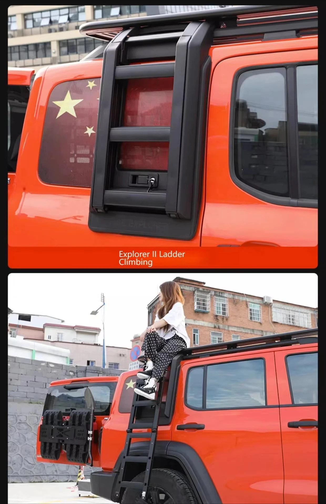 Side storage box + folding ladder + roof platform